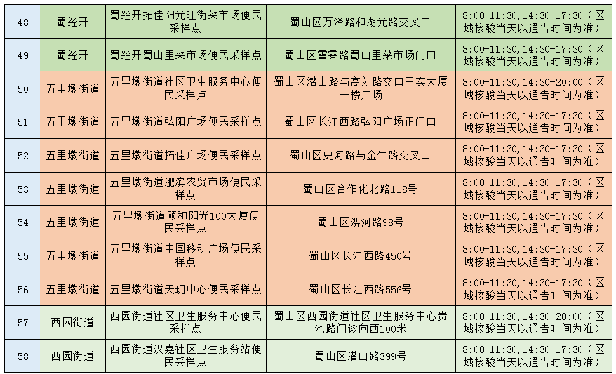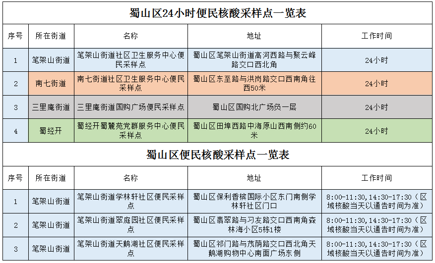 com为便于广大市民就近(jin)快速完成核酸检(jian)测采样,有效控制和降低(di)疫情传播风险,切实保障广大居(ju)民身体健康,蜀山区适时调整更新了(le)67个便民核酸检测采样点,其中24小时点位有4个。