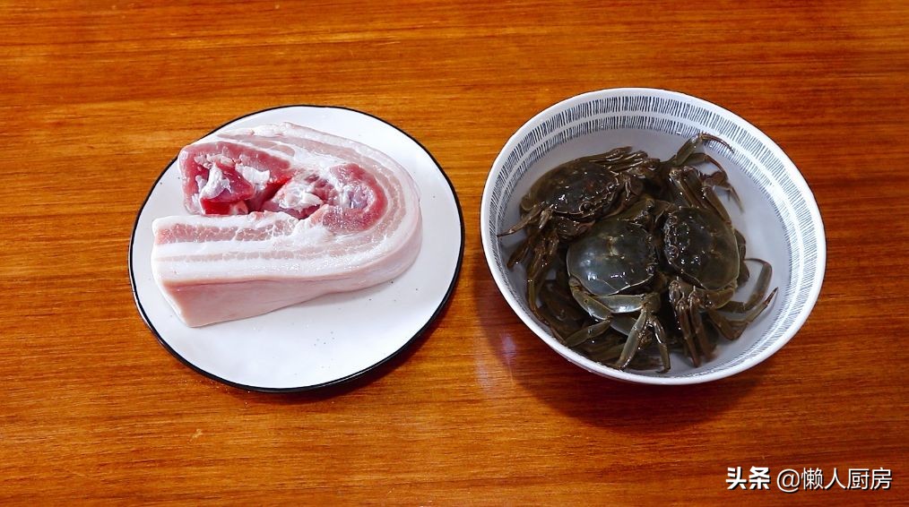 猪肉,螃蟹,葱,黄酒,酱油,冰(bing)糖,盐,醋,淀粉,油。