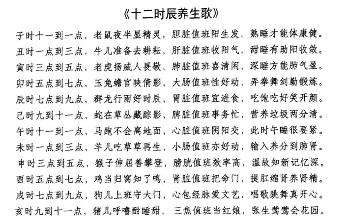 前半夜11时至1时为“子时”,午夜1时至3时为“丑时”,后半夜3时至5时为“寅时”,早上5时至7时为“卯时”,上午7时至9时为“辰时”,9时至11时为“巳时”,11时至下午1时为“午时”,中午1时至3时为“未时”,晚上7时至9时为“戌时”,9时至11时为“亥时”。