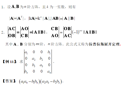 【小(xiao)结】:本题用到了分块矩(ju)阵行列式的计算公式(shi),也即拉普拉斯展(zhan)开式。它在行列式计算中的作用与(yu)行列式的展开定理类似,都是将行列式降阶,进而降低计算难度(du)。而通常情况下,它降阶的速度往往比(bi)展开定理更快。一般(ban)来说,当行列式中有较(jiao)多的零时,就可(ke)以考虑利用行列式的性质(zhi)将零集中起来,组成分块矩阵再进行计(ji)算。