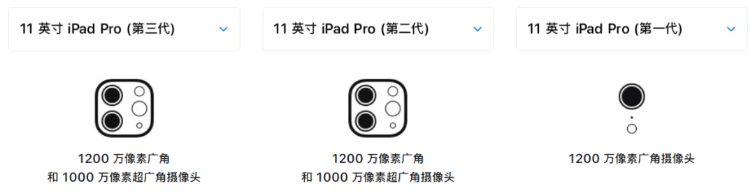要说这三(san)台 iPad Pro 在外观上最(zui)大的区别,就在于它们的(de)后置摄像头模组了。