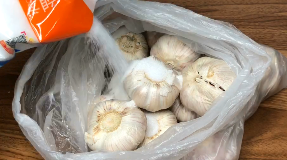 第2招,大蒜装入保鲜袋,撒上一些食盐,密封后,放冰箱保鲜。食盐有吸湿的作用,能保持大蒜的干燥,不易发芽,放半年不干瘪,第一招可以和第二招合并使用。
