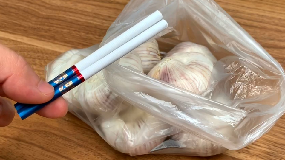 第三招,大蒜装入保鲜袋,和老公要2根香烟,丢入保鲜袋,尼古丁有抑制大蒜生长的作用100,烟丝有吸潮的作用,密封后放冰箱保鲜,这样保存大蒜一年不会坏。