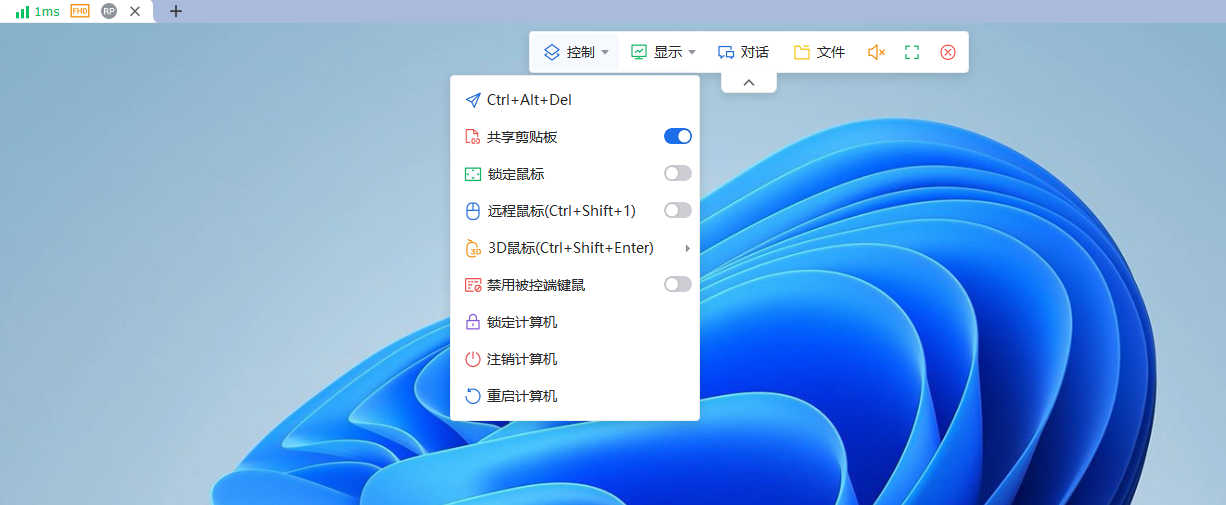 连(lian)接成功后,向日葵远控这(zhe)里支持自定义功能区,可以根据个人使(shi)用习惯把常用的(de)快捷键拖去。