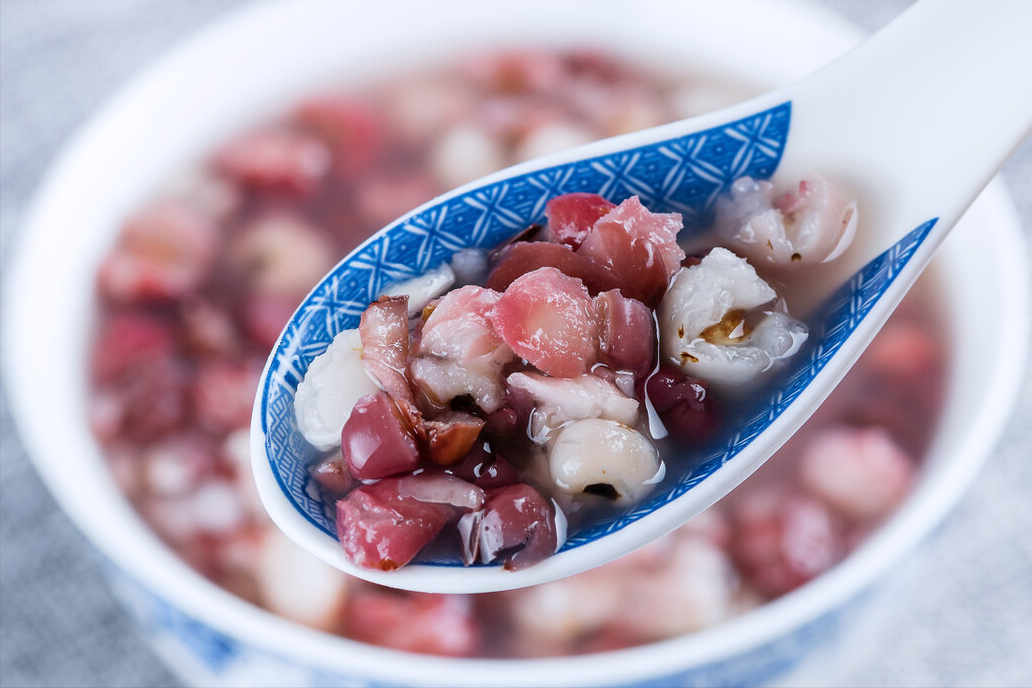 4、煮好以后用(yong)勺子稍微搅拌一下,你就会(hui)看到红豆已经软烂、甚至开花(hua)了。喜欢喝甜一点的,这个时(shi)候加上几块冰糖(tang)进去,搅拌到冰糖融(rong)化之后,继续煮(zhu)10多分钟,就可以关火了,盛出来(lai)喝。