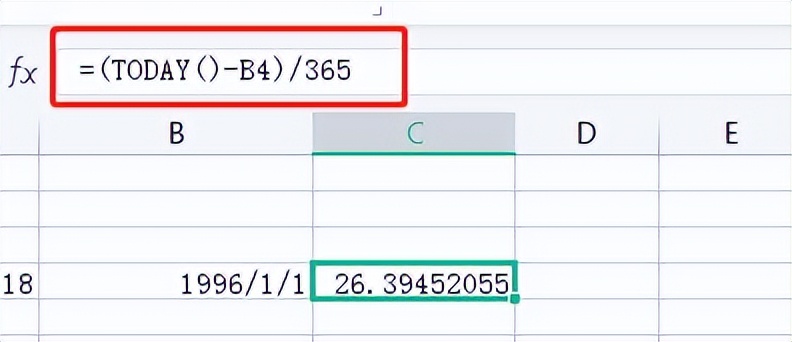 提取完出生年月日后,还需一次公式计算才可以算出年龄: