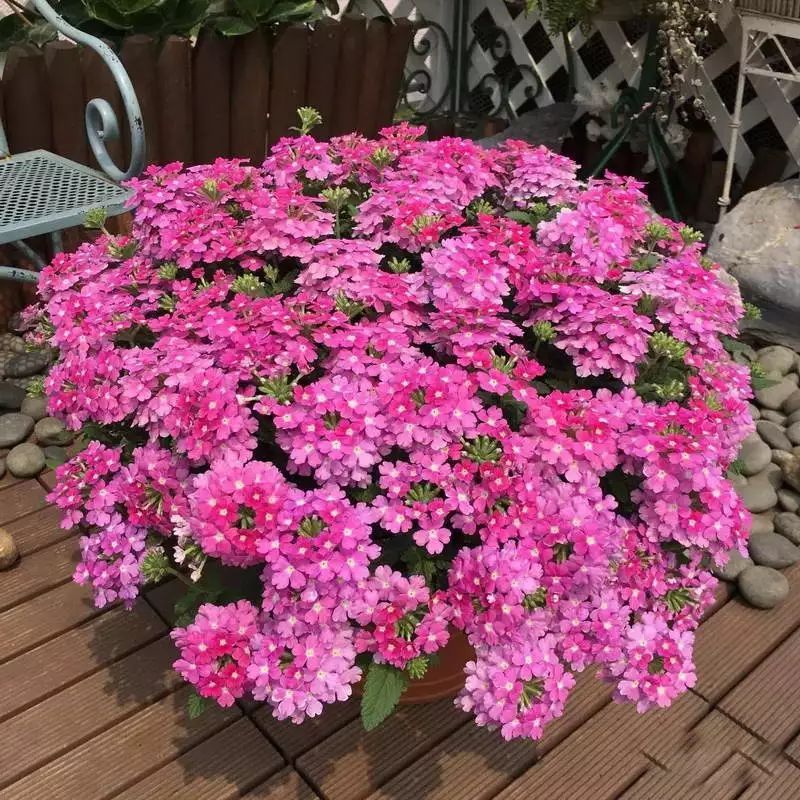 美女樱虽然叫樱,其实它和樱花有着千差万别,它属于马鞭草属的一种多年生的草本植物,是一种非常喜欢光照和暴晒的花卉。它是非常怕冷的植物,在夏天里越热越开花,生长起来非常泼辣,开起花来就像一丛丛花枝招展的花球一般,适应性非常强,对土壤要求不高,在露天的环境下。从春天一直可以开到11月份儿,如果冬天家里有空调,它还可以开花全年无休。所以在夏天养盆美女樱是非常划算的,给夏天增添了无尽美色的花卉植物。