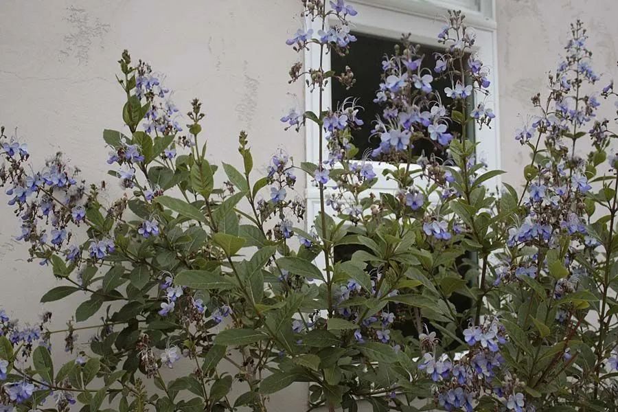 蓝蝴蝶也是一种开花蓝莹莹的花朵,它的花朵非常的精灵古怪,就像一个个的蝴蝶,也被称作是最像蝴蝶的花。在夏天炎热的环境中,越热越开花,虽然花朵不大,但是一个个灵动可爱,一开花就是一小丛,漂亮无比。在夏天38度高温下依然能够开花,需要大水大肥大太阳的养护。它是多年生的植物,冬天放在5度以上的温度下保温,第二年还能再开花,可以长成小花树般的存在。