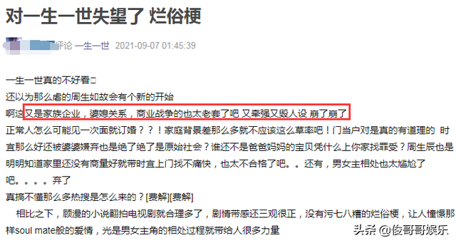 还有人吐槽剧情有烂俗梗,比如家族企业婆媳关系上业站在有些俗套,不够新颖。