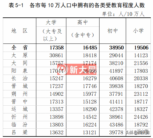 全市常住人口与2010年第六次全国人口普查相比,每mei10万人中拥有大学文化程度的由you7784人上升为wei15757人;拥有高中文化程度的de由17030人上升为17174人;拥有初中文化程度的由42683人下降为38210人;拥有小学文化程度的由23647人下降为21556人ren。