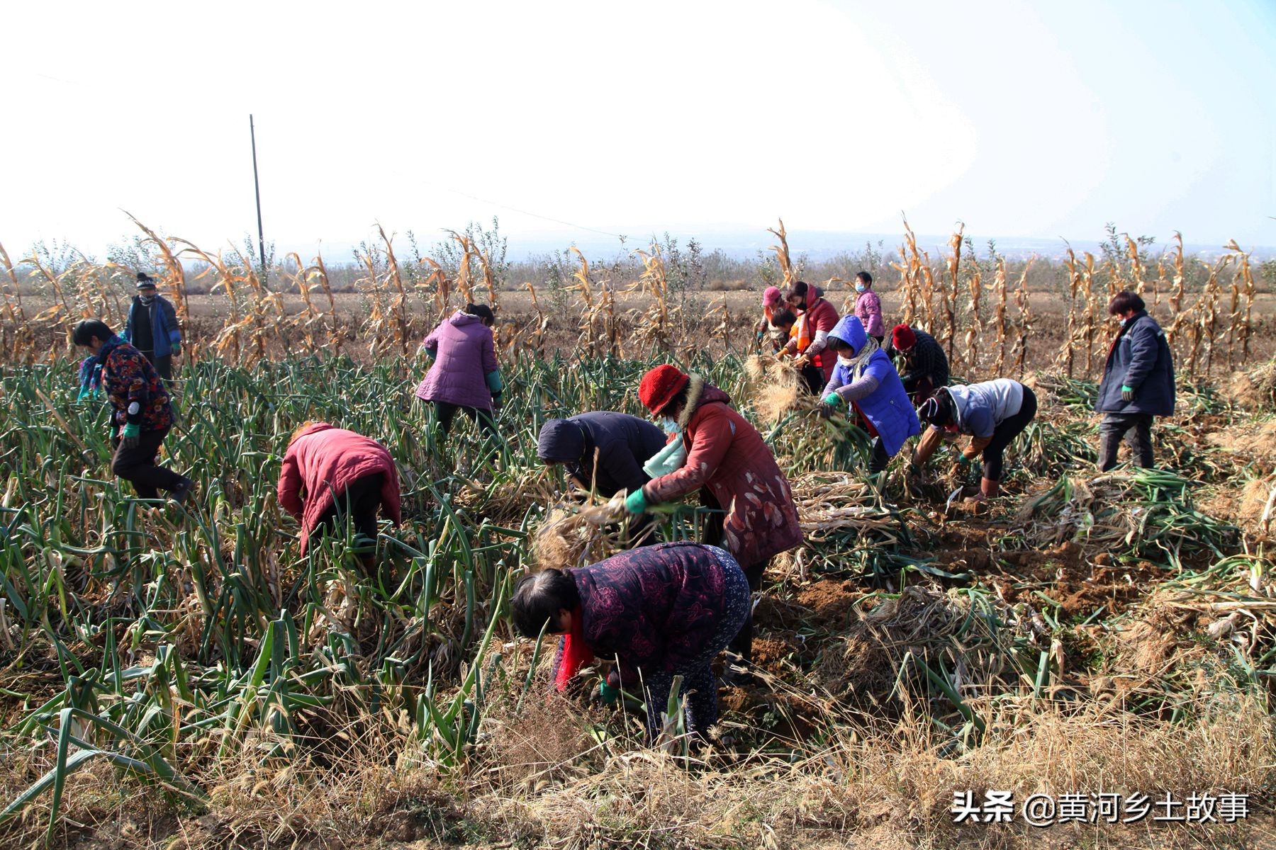 曹大哥家的30亩大葱全部采取人工来收获,雇了来自邻县稷山农村25名妇女,已经有7天时间了,再有一天就能全部完成。妇女们的工钱是按照小时来计算,一小时10元钱,每天要干10小时以上。