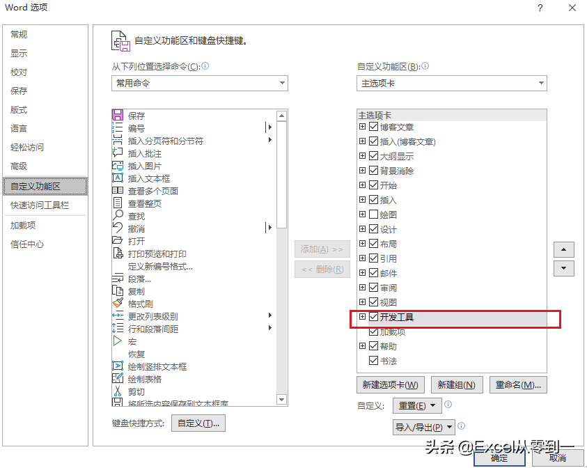 在word中设置下拉la菜单我们需要用到dao开发工具功能组,首先我们点word最左边的击文件jian按钮,然后点击选项,在word选项中找到自定义yi功能区,然后在右边的de主选项卡中勾选开发工gong具点击确定即可,这样yang的话我们就能找到开发工具功能neng组了