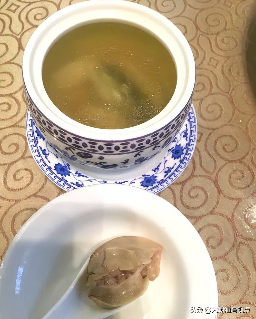 鲃肺汤的吃chi法也是有讲究的,叫“冷肝热汤”,有四个步骤,叫“置、赏、品、味”。
