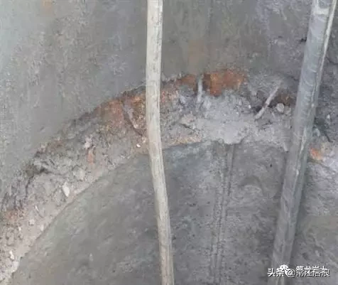 7.1.4灌注桩浇注桩身混凝土时有土或其它杂物掉落,出现缩颈、孔洞、夹土、断桩或强度不足现象,桩头混凝土高出垫层标高。