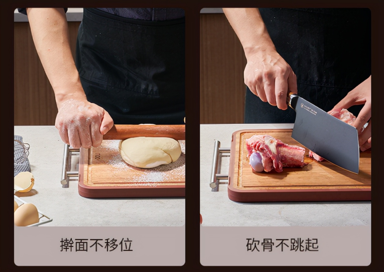 这块菜板令人惊喜的还有就是,乌檀木材质的它,终于可以用来砍大骨头啦!
