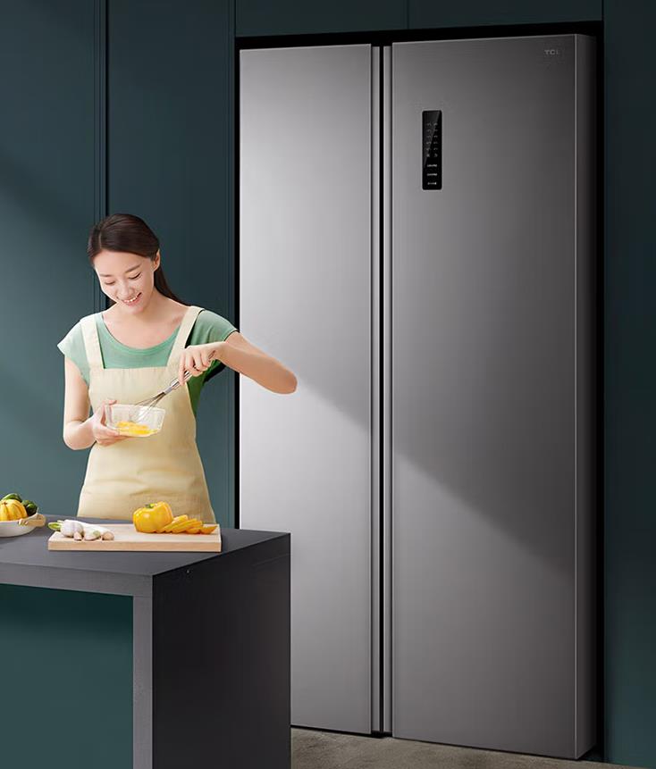 比如TCL的455升V3系列超薄对开门冰箱,价格还不到2200元。面板做工很好,有全触控显xian示屏,可以调节温度的,操作方便。