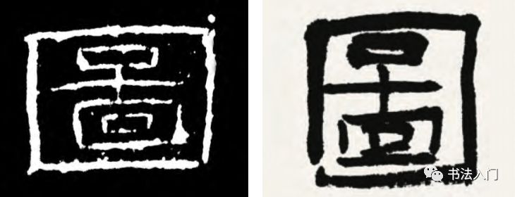 图15-2 《礼器碑》“图”字(右图为布白不匀称临字)