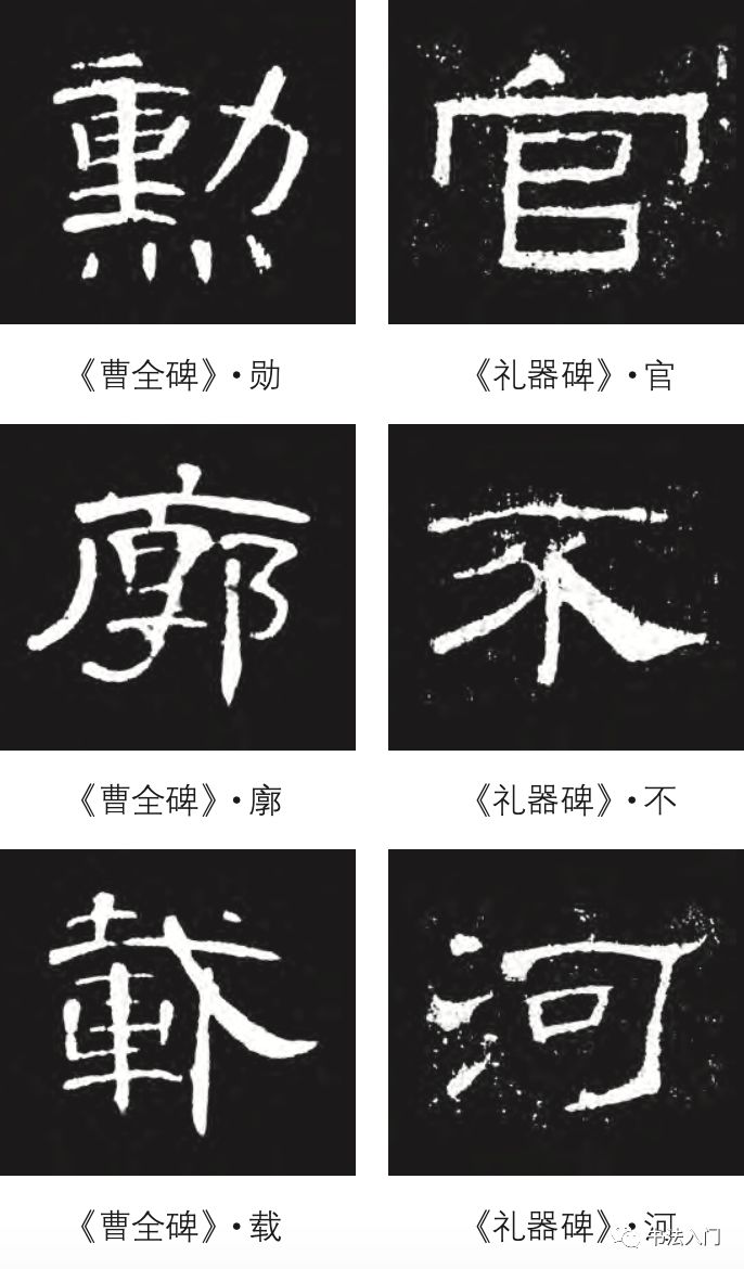 《礼器碑》《孔宙碑》等其他的几种秀逸隶书,也存在这种篆构隶写。
