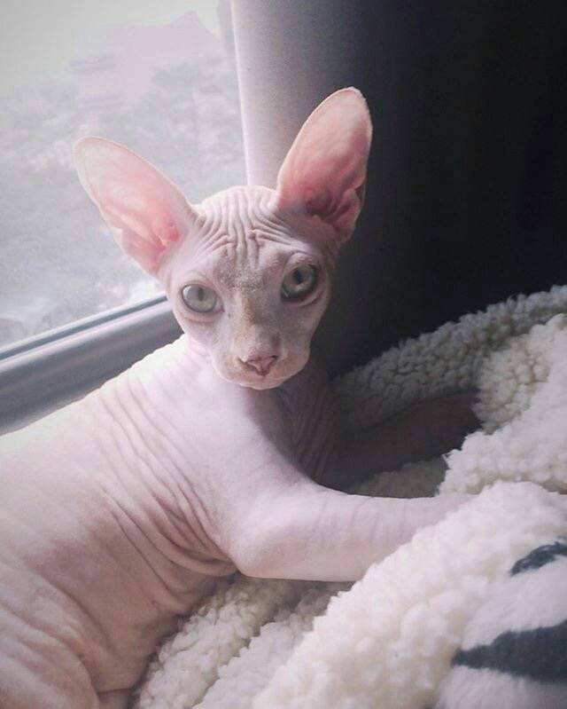 加拿大无毛猫也叫斯芬克斯猫。它虽然长相怪异,但是性格温顺,忍耐力强,脾气好,独立性强,无攻击性,能与其他猫狗相处。爱干净,便后会掩盖自己的粪便。无毛猫非常的聪明只要稍加训练就能做到像狗狗那样听话,比如:叼回扔出的物品对它们来说那是小菜一碟。对主人忠诚,其实在某些方面它们还是挺像狗狗的。