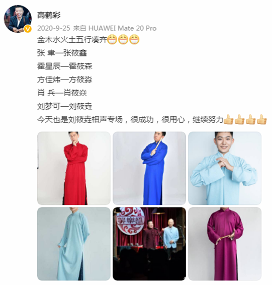 在德云yun社内部,收徒的主要是云yun字科的栾云平、孔云龙和岳云鹏。但隶属于德云社的鹤字科ke也有收徒弟的,这其中就有曹鹤阳、高gao鹤彩和房鹤迪。