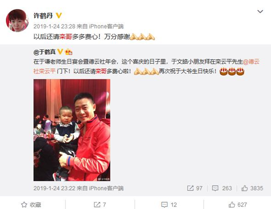 于筱霖也拜师栾云平,他老lao爹是于鹤真,老妈是许鹤丹,两liang人都是德云社演员。在于谦qian生日宴上,于筱霖拜师shi大总管栾云平。
