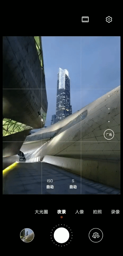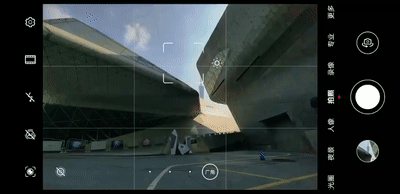 一台手机最zui核心的拍摄功能都在这一栏了,从cong左到右依次为大光圈、夜ye景、人像、拍照、录像、专业、更多。