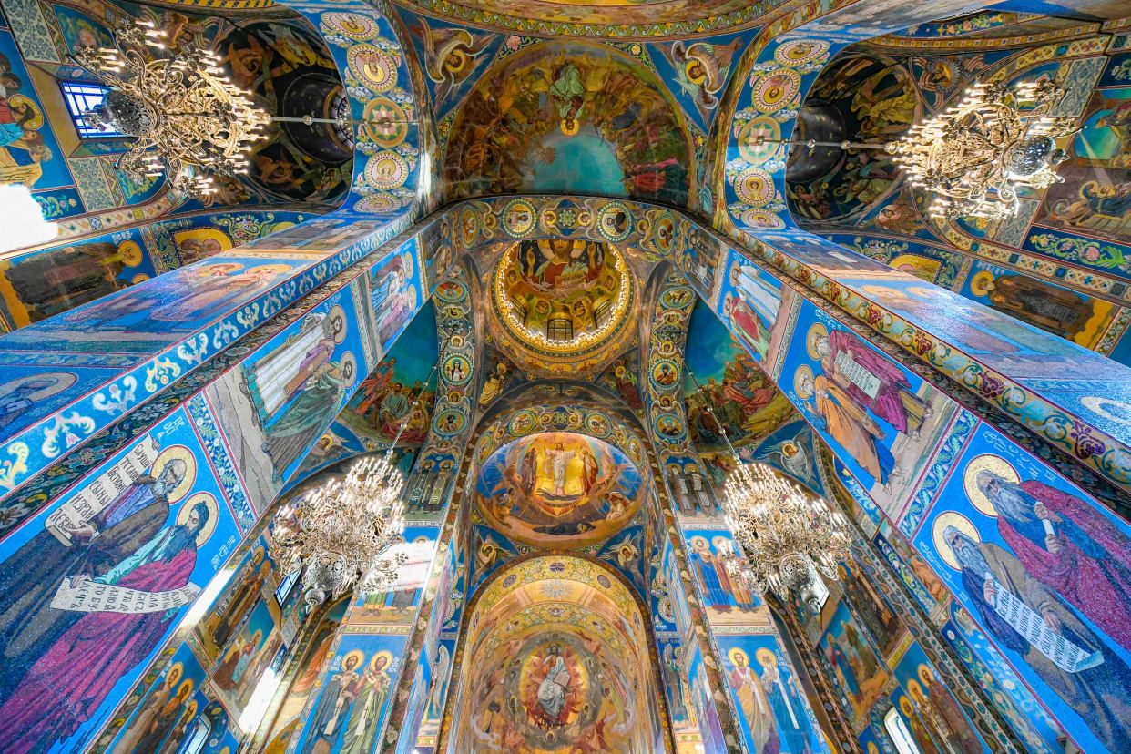 滴血救世主教堂,也被称为基督复活教堂和基督喋血教堂,修建于1883年-1907年,是圣彼得堡地区少有的纯俄罗斯风格建筑,教堂内有7500平方米的马赛克,其马赛克的覆盖程度超过世界上其它任何的教堂,其建造依照的蓝本是莫斯科红场上的瓦西里升天大教堂。1881年3月1日亚历山大二世在此地遇刺身亡,这座教堂就是为了纪念他而建造的。