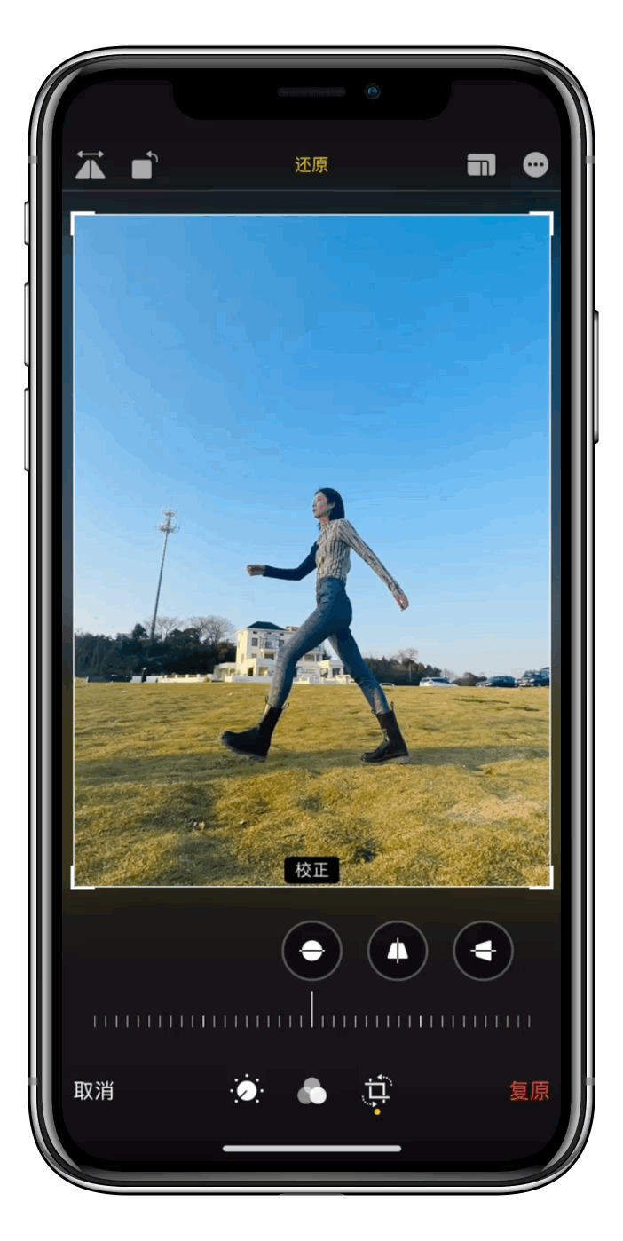 裁剪功能里的校正功能大da家平时用的多嘛,左边第一个是旋转角度是大家最常用的吧!拍斜了le不要担心,5秒钟zhong就可以校正回来~