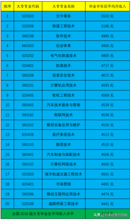 从这份榜单中我们可以看出,计算机类的专业占据了榜单中的5个,而交通运输类专业占了3个,这两个专业在这份榜单中占据了8个,尤其是计算机类专业独占半壁江山。从以上两份数据中可以看出,在大专院校的专业中计算机类专业和交通运输类专业是毕业后收入最高的。根据麦可思《2019年度全国大专毕业生月均收入》数据显示,全国2018届大专毕业生半年后平均月收入为4112元,全国2015届大专毕业三年后月均收入为6005元。