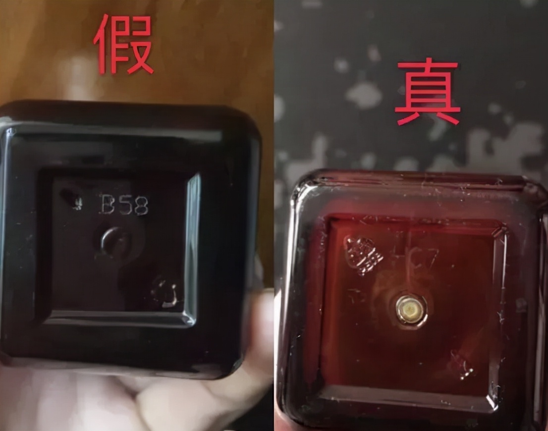 对比可以发现管口的位置是不一样的,真的颜色会比较深一些,并且他的印刷会比较完整。